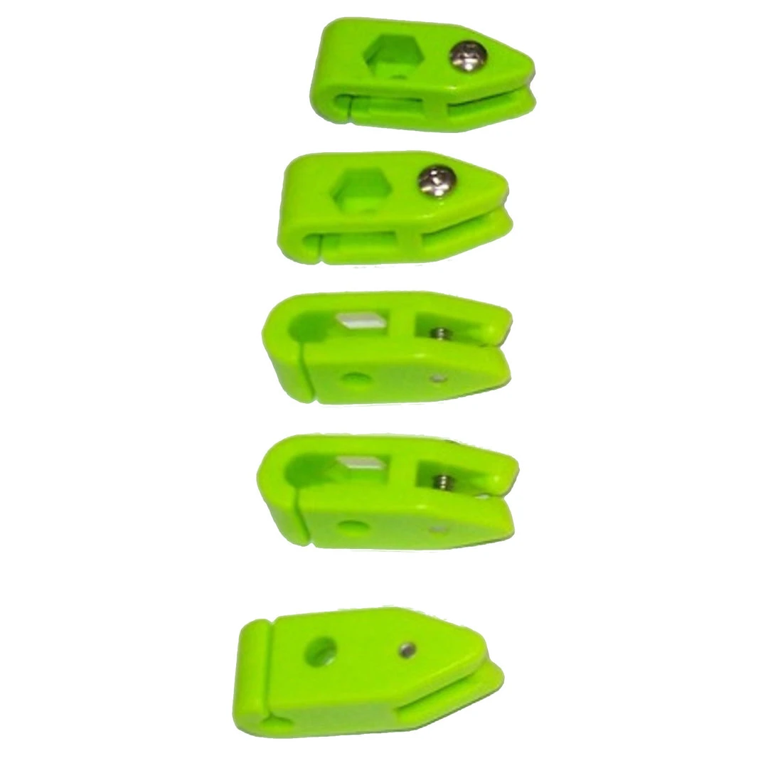 Amish Outfitters Clipper planer board releases have solved a problem that has plagued board fisherman for years. All too often, when running three lines off each planer board, a fish will hit the number two line and pop the release. The number two release then hangs down slowly sliding down toward the board. A wave moves the board and the clip swings in a circle and traps the number one line. The solution? Bring in the planer board and untangle your mess. It shuts down your fishing for at least five to ten minutes. The Clipper Release is compact, light, and different in design than any release on the market. With its adjusting screw, you adjust it once and forget about it. I prefer to use rubber bands with the release, but that is a personal preference. I let my line out to the desired length, half hitch a rubber band around the line, and snap the loop of the rubber band into the Clipper Release. A quick grab of the tow line, slip the release on the tow line, and you are ready to catch fish. At the end of the day, it is a simple task to remove the releases from the tow line and stow them away until the next trip. They are so compact, you can put a dozen in your pocket to start the day instead of having to fumble around trying to separate a tangled mess. These are plastic with a stainless steel screw, so there is no rusting. These releases come in orange and lime green for great visibility.