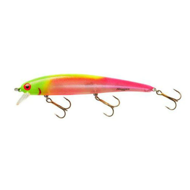 Bomber Long A Lures have a trademark tight wiggle and rolling movement that create a life-like swimming action. Long A Lures produce the same seductive action whether fished with a slow retrieve on top or at a faster trolling speed using a downrigger. The molded-in lip design of these lures gives them added strength and true-running performance. Great for targeting bass, walleye, pike, salmon and trout.