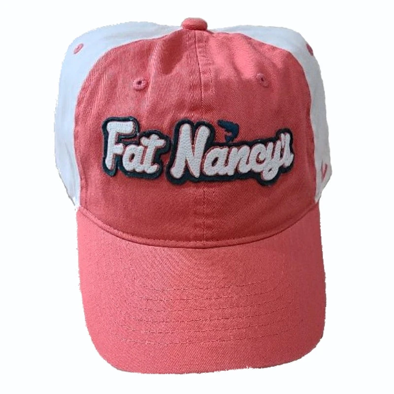 Fishing baseball hat with Embroidered Fat Nancy’s Design Available in Coral Front and White back, with an adjustable Velcro strap for sizing. 100% Cotton, Six Panel, Hand Constructed.