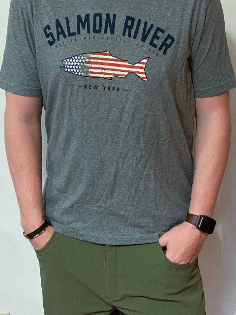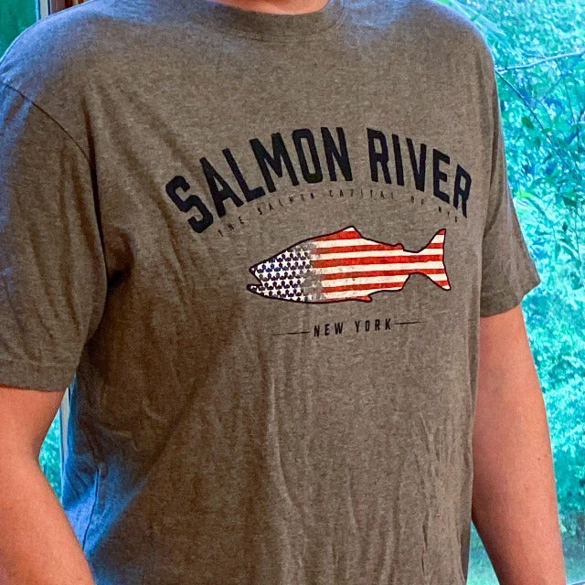 Show your love for America and Pulaski with our Salmon River American Flag shirt! Â