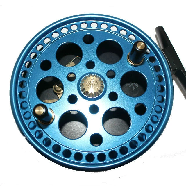 Kingpin has responded to many requests by our customers and brought back a very popular design. The Royalty was a workhorse of a reel, so we upgraded it from its original design, with that a new name was in order. We call the new reel the R2. All exposed edges have a radius to make the R2 very comfortable in hand. The palming rim is the absolute best design in the industry. No ‘hot spots’ from trying to stop an angry fish on the run downstream! The 4 ¾” diameter provides for faster retrieves on long drifts, than a smaller diameter reel. To fulfil most anglers desires to have truly unique equipment, Kingpin has provided 8 stock spool colours to choose from.