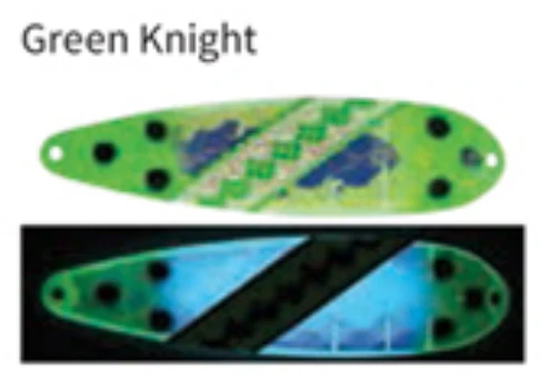 The Moonshine RV Series Spoon is a hand painted, UV reflective spoon designed to attract salmon, steelhead, trout, pike and many other species while trolling. The silver back delivers eye-catching flashes that fish can’t resist.Â