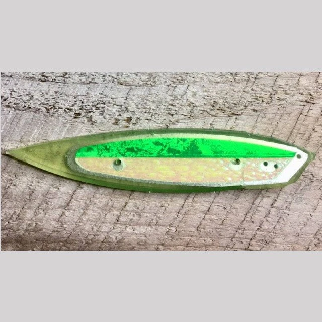 Prime Cut is a 5 1/8″ imitation cut bait that can be rigged with magnum or regular sized cut bait heads. The Prime Cut is available in a variety of colors to attract both Salmon and Trout. They are also very durable, and can be used over and over versus a strip of cut bait that’s used only once. Once tuned even a short strike won’t knock it out of tune. One bait per pack
